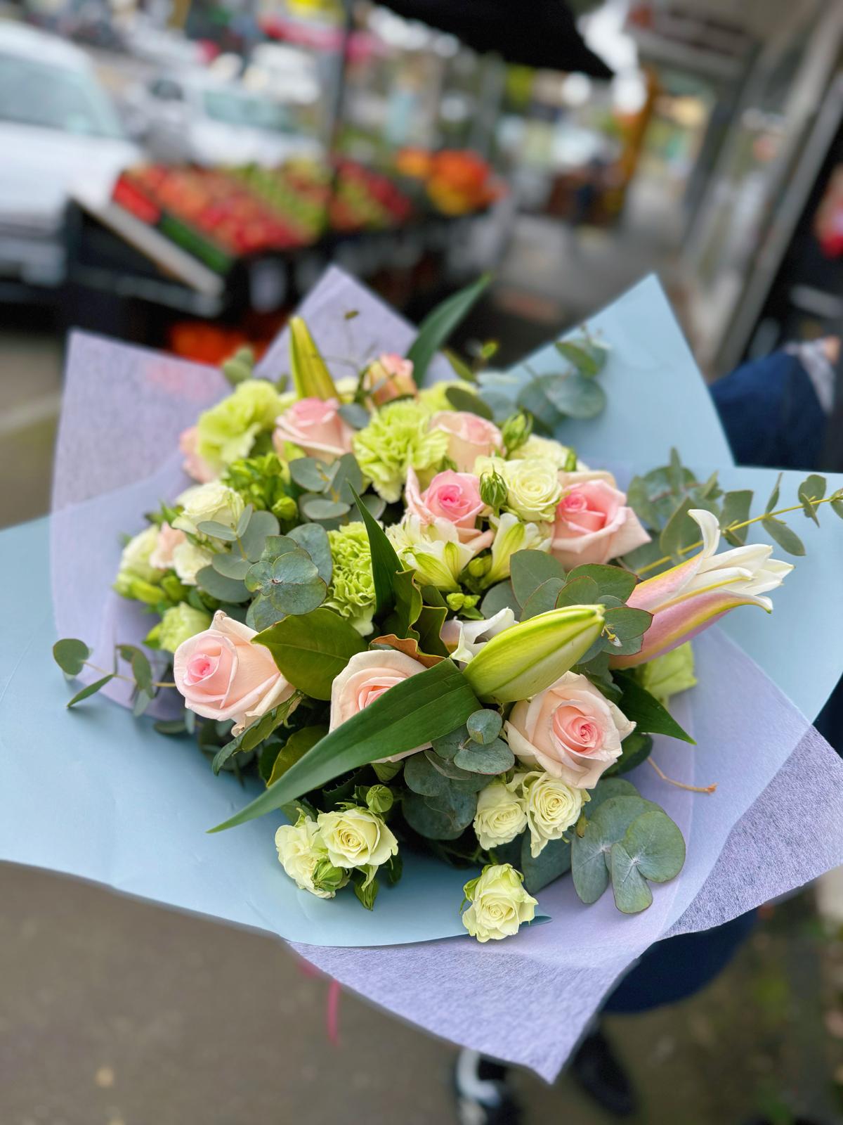 This stunning Sweet Pink Bouquet offers delicate pink blooms that create a sense of grace and charm. With a variety of flowers, including roses and carnations, this bouquet is perfect for expressing love and appreciation. It's sure to make any occasion more special.
